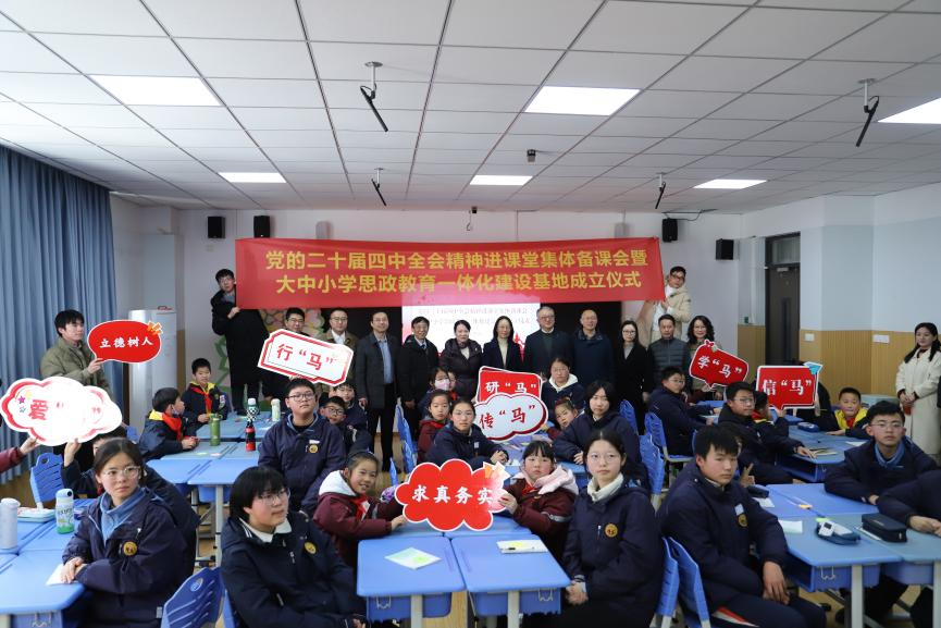 于1月9日在南京仙林外国语学校华侨城中学与中共南京市栖霞区委宣传部、仙外华侨城中学、仙外华侨城小学共同举办党的二十届四中全会精神进课堂集体备课会暨大中小学思政教育一体化建设基地成立仪式。栖霞区委宣传部副部长兼文明办主任罗红玲、南京仙林外国语学校党委委员程迓庆副校长、91porny