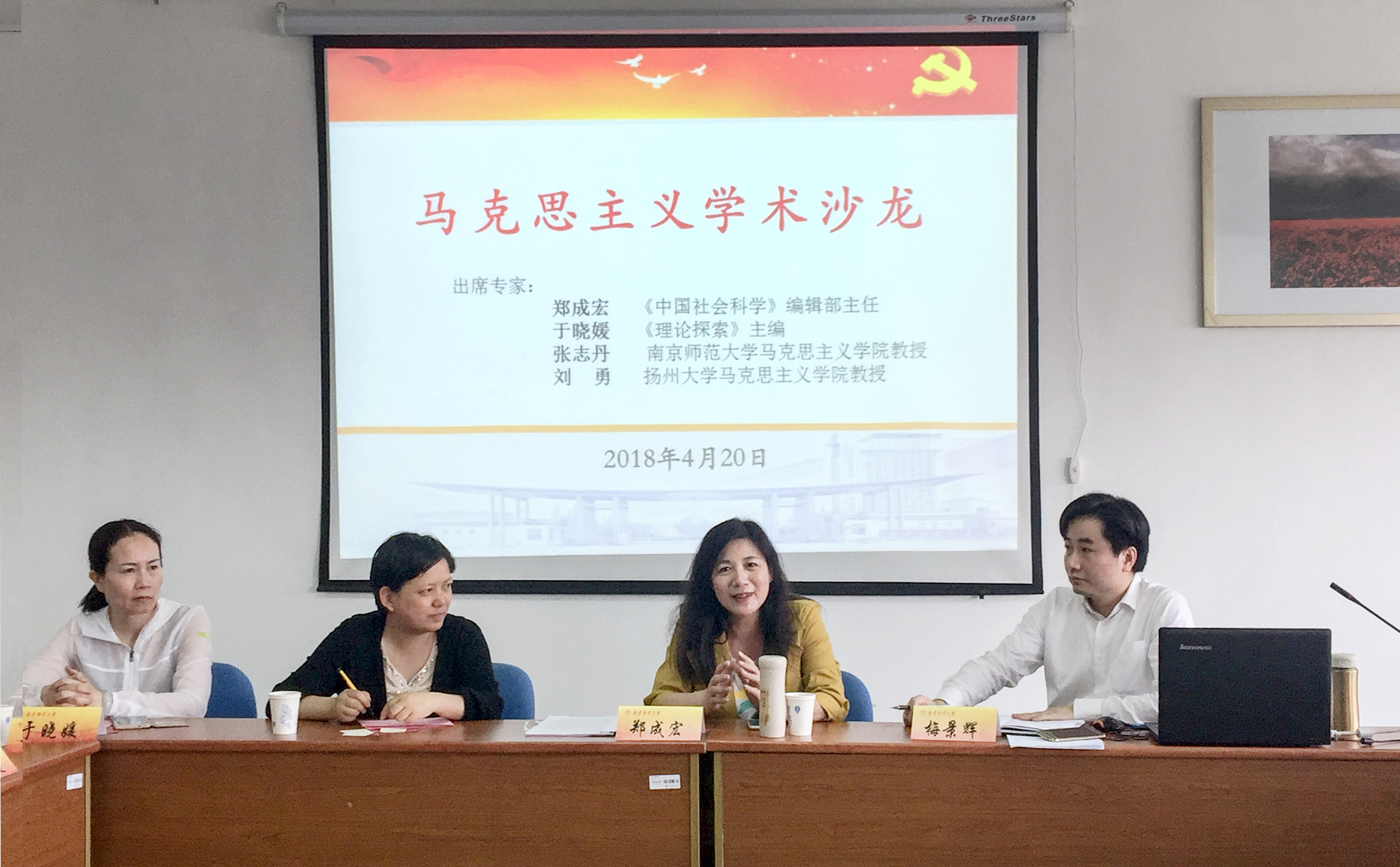 于德正楼508室举办了马克思主义学术沙龙活动,《中国社会科学》编辑部主任郑成宏、《理论探索》主编于晓媛、《河海大学学报(哲学社会科学版)》编辑部主任吴玲、南京师范大学91porny