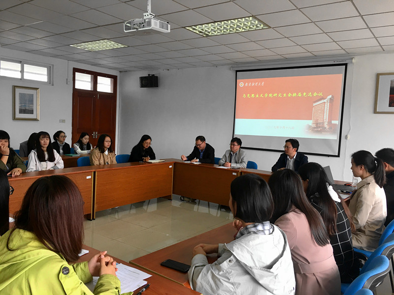 在德正楼508会议室召开了院研究生会学生干部换届竞选会议。学院党总支书记殷建新、院长耿步健、研究生秘书陶蓉以及全体硕士研究生参加了会议。换届竞选的评委由耿步健院长、陶蓉老师、第四届院研究生会主席冒林波、研究生党支部书记李蓉菲、校研究生会副主席蒯金娜担任。会议由第四届院研究生会副主席周金伟主持。