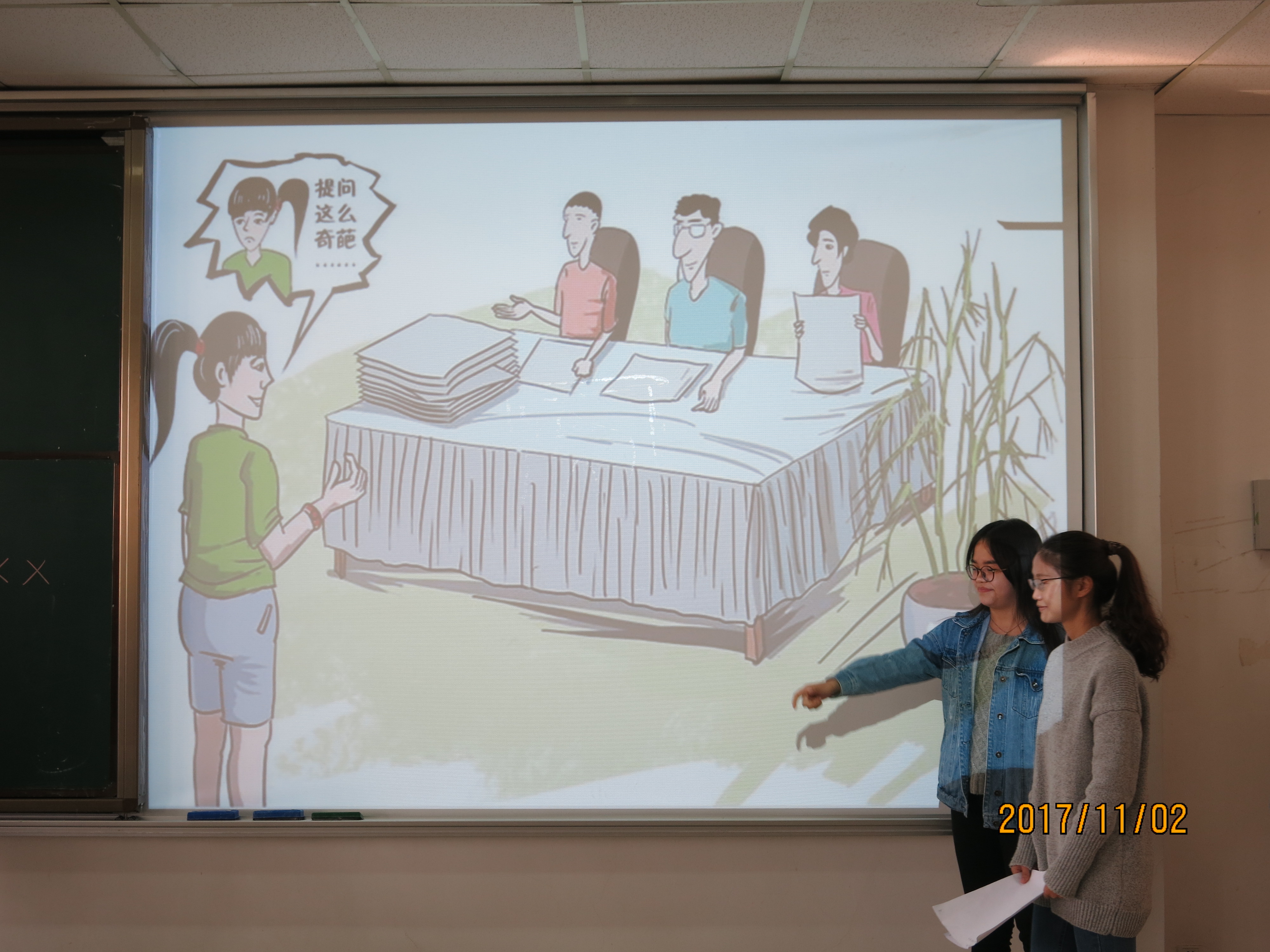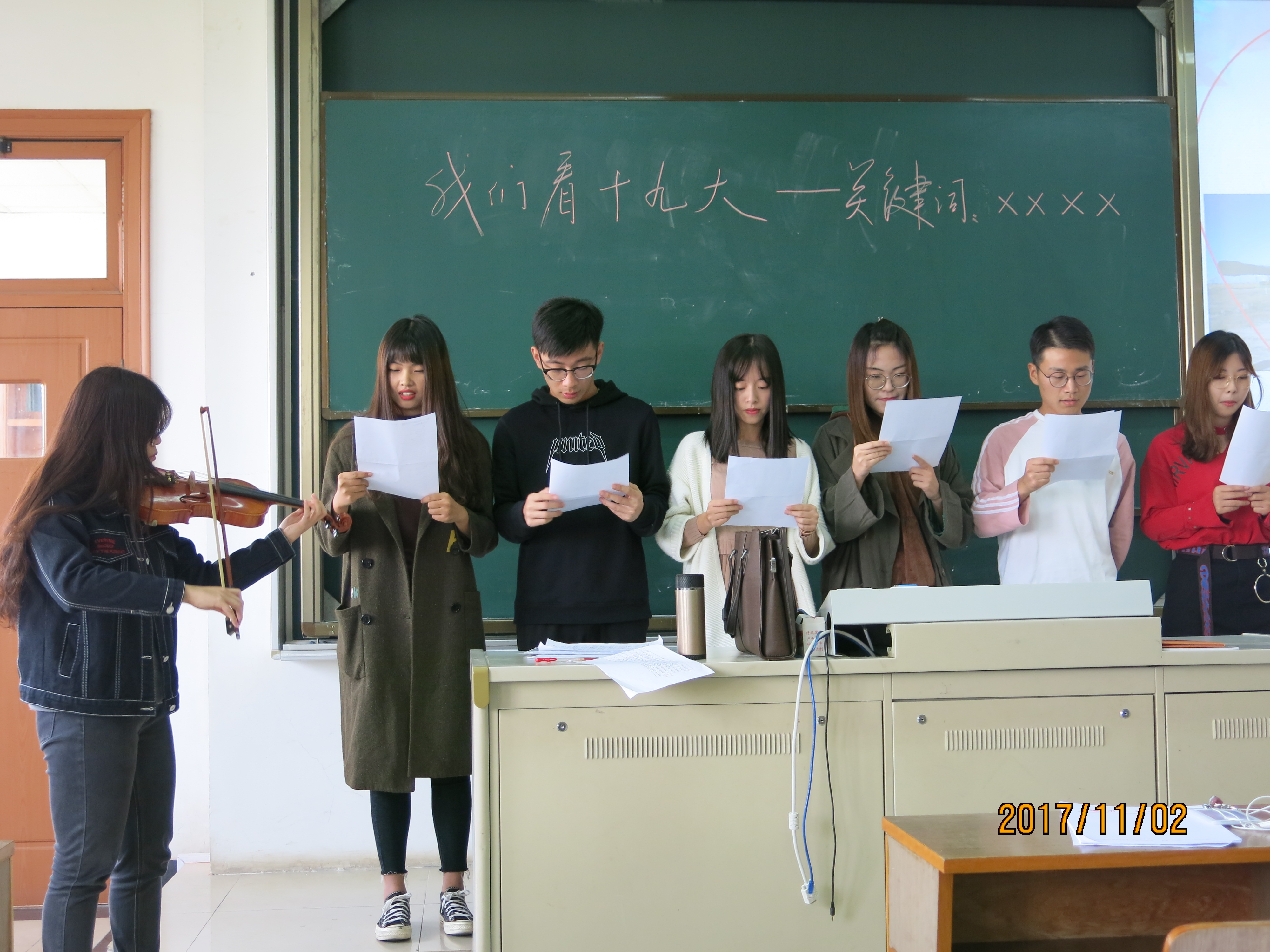 思想政治理论课《毛泽东思想和中国特色社会主义理论体系概论》课堂,同学们在赵磊老师的鼓舞和带领下,踊跃走上讲台,以自己的切身感受演绎对党的十九大精神的理解和诠释。学生们有的制作PPT,阐释理论要点;有的以配乐诗朗诵的形式表达了对美好生活的向往;有的以情景剧的方式展示了对民生问题的关注,课堂欢声笑语,气氛活跃。