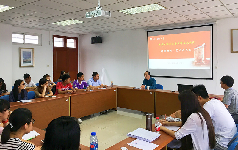 那玉成教授首先从“艺术生产的形式”讲起,通过对艺术形式的相关类型进行介绍,点明了艺术形式的构成要素及其具有意识形态性、民族性、时代性和变异性等特点。其次,对马克思主义美学在中国的发展以及著名美学家王朝闻先生进行了介绍,指出具有教化功能的艺术作品必须符合“真善美”的要求。接着,通过对西方著名画家高更和梵高的艺术作品进行点评,指出绘画是心性的表达,艺术创作更是一种情感的表达方式。最后,向大家展示并介绍了自己的部分绘画作品,同时希望同学们能够在主攻学术研究的同时注重培育绘画、书法等兴趣爱好,以不断提高自己的艺术修养。在场研究生就艺术创作等问题与那教授进行了讨论,讲座现场气氛热烈。