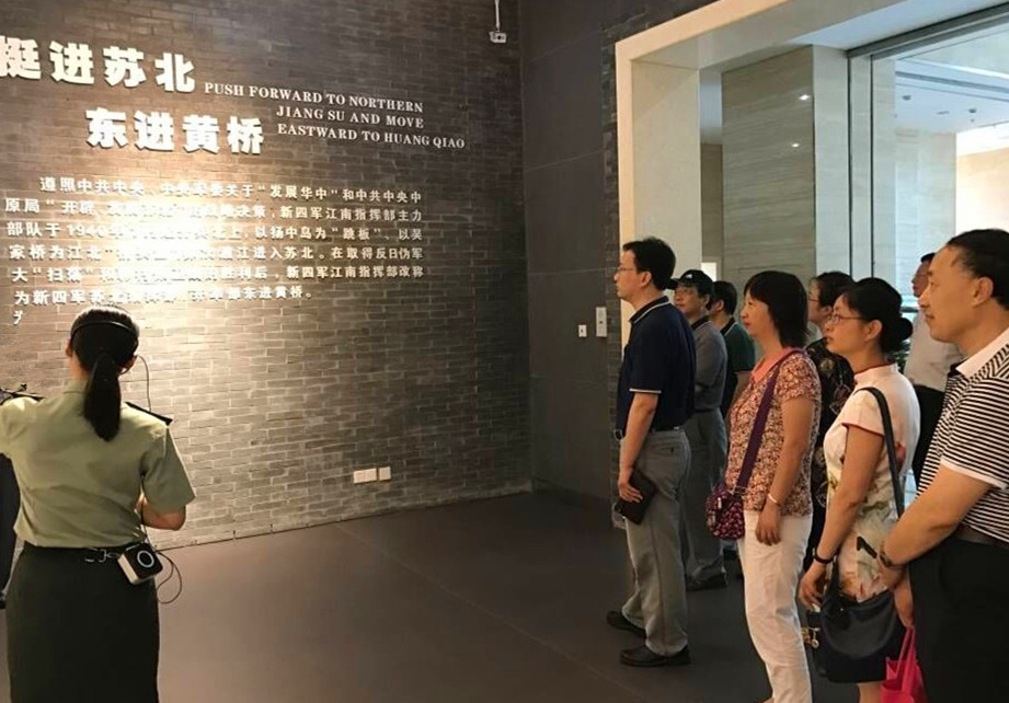 7月11日,全体党员怀着崇敬的心情来到雄伟的新四军黄桥战役纪念馆新馆。在讲解员的带领下,党员们依次参观了中央决策、发展华中,挺进苏北、东进黄桥,立足黄桥、团结抗日,统一战线、纵横捭阖,自卫还击、决战黄桥,合力同心、奋勇支前,革命精神、光照千秋,中国历史文化名镇黄桥等8个展区。通过讲解以及实物、图片、文字、视频、模拟场景的展示,大家认识到黄桥战役的胜利,是以陈毅、粟裕等同志为首的苏北指挥部执行党中央、毛主席的指示,正确指挥的结果;是参战指导员不怕牺牲,英勇奋战的结果;是南下的八路军第五纵队战略配合的结果;是争取了部分地方实力派保持中立的结果;是当地党组织和人民全力支援的结果。