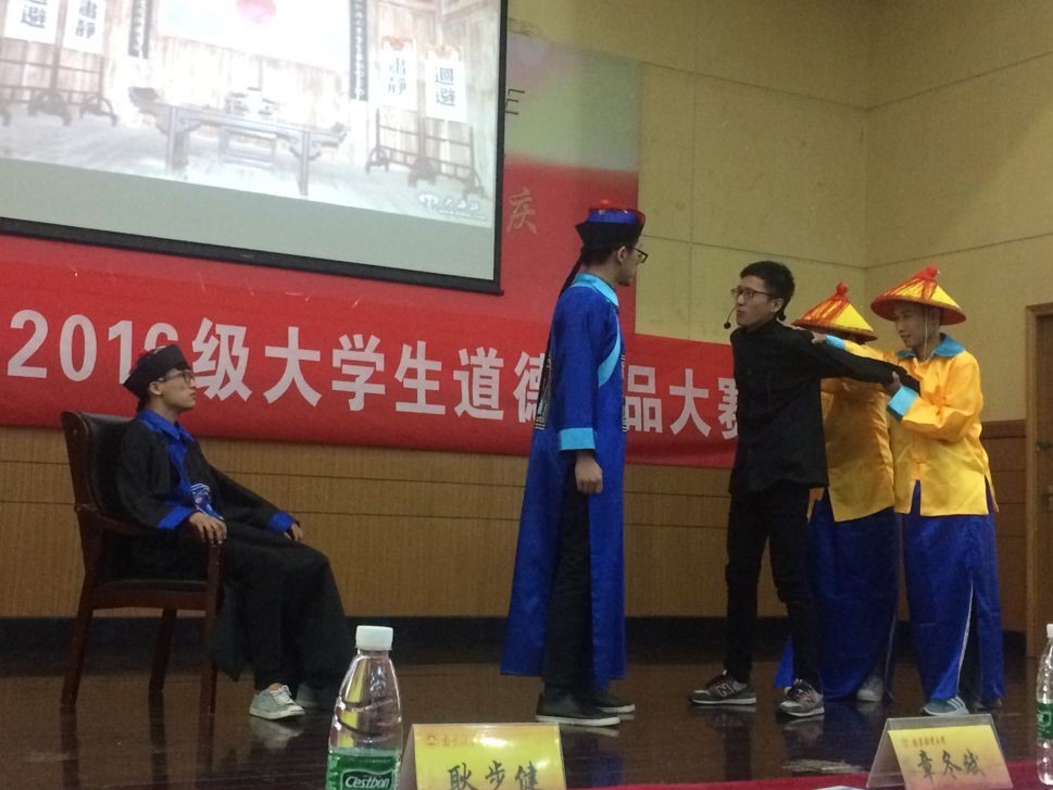 2016级大学生道德小品大赛”决赛在仙林校区专二报告厅顺利举行。党委宣传部部长韩力争老师、学生处副处长章冬斌老师、校团委书记张励行老师、91porny