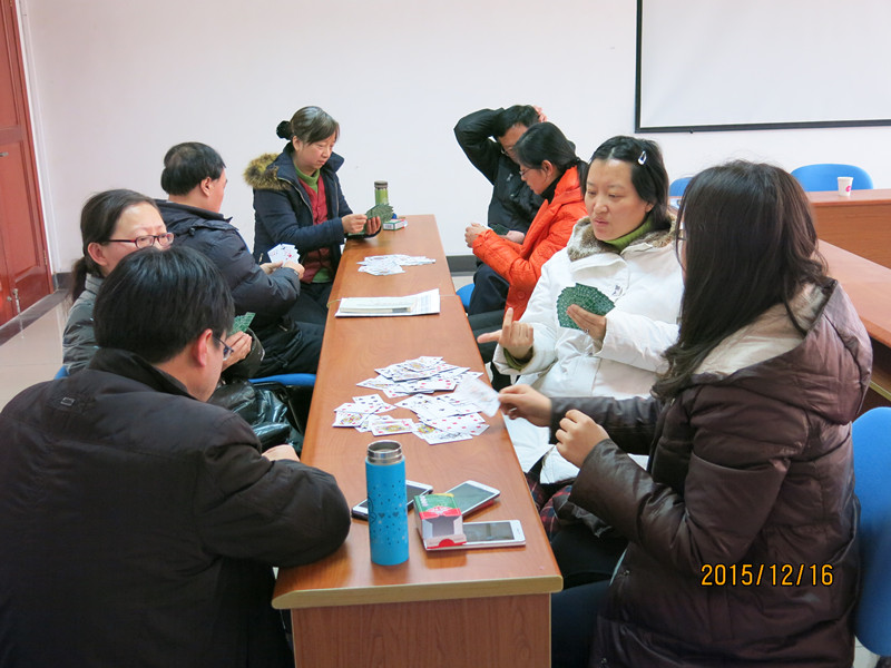 12月16日下午,91porny 会议室欢声笑语,学院分工会迎新年扑克牌比赛正在热烈进行中。每位参赛队员都憋足了劲,有的凝神思考,有的恍然大悟,观战教工有的出谋划策,有的高声叫好,现场洋溢着欢乐和谐的气氛。通过比赛,促进了相互交流,加深了感情。