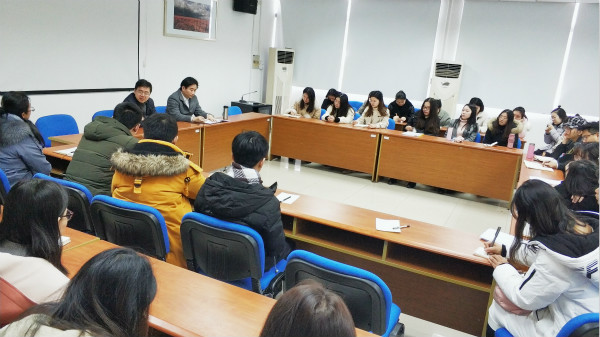 在学院会议室召开2018-2019学年第一学期研究生期末工作会议。学院党总支书记耿步健教授、院长梅景辉教授、研究生秘书陶蓉老师和全体在读研究生参加了本次会议。
