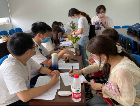 2020年迎新工作有条不紊地开展。院研究生会主席姜子玥、陈寒醒及其他成员组成的迎新团队极有默契地进行着相关工作:到校签到、核对信息、审核各类证书、收取相关材料、分发体检表及后续事宜的说明……新生们在学长学姐们的耐心引导下顺利地完成了各项入学报到手续。