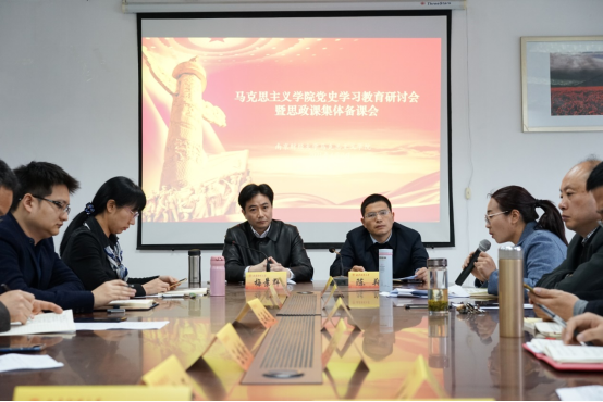在德正楼508会议室召开党史学习教育研讨会暨思政课集体备课会,学院全体教职工参加,会议由院长梅景辉教授主持。会上学院领导班子成员、教授代表、党支部书记代表以及教研部主任代表等先后发言,深入交流党史学习教育的心得体会及如何将党史学习教育融入思政课教学的思路与方法。