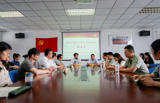 于德正楼508会议室召开庆祝中国共产党成立100周年座谈会。学院院长梅景辉、党总支书记陈翔出席会议,青年教师和全体在校研究生参加此次会议。会议由学院党总支书记陈翔主持。