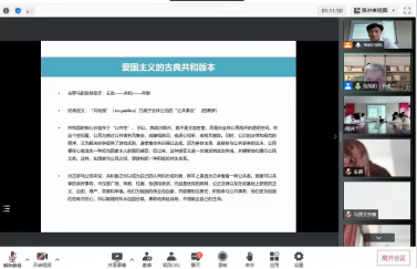 梅景辉教授对本次学术报告作总结点评。他指出,张凤阳教授从政治现象学、政治思想史的角度出发,对爱国主义作了丰富而深刻的阐释。对我们有着四点重要启发:第一,要深入理解作为“共同体”的“国家”的内涵与价值,在西方政治思想史的研究与中西政治思想的比较中,发掘中国传统社会的家国体系和西方共同体体系的共通性。国家既有作为垄断统治体的一面,也有作为情感的政治共同体的一面,其正是作为一种“共同体”,才能形成有效的认同机制,这也是爱国主义的价值所在。第二,使一个大国中的不同阶层、不同利益诉求的成员形成共同意识、激发爱国主义情感,关键在于确立爱国主义的前提:即人民对国家的情感认同、理性认同和政治认同。爱国主义的本质是认同式的。当国家治理和发展成为人民的公共事业,做到“天下为公”,就能够构建人民的情感基础和认同基础。第三,张凤阳教授从“爱国歌曲”的生活现象中阐释“爱国主义”的根本问题,从生活世界的文化传统、社会规范、个性结构三个维度阐发政治学的核心理论,从而在国家认同和社会规范的基础上构建文化、社会共同体,从而激发个性结构中的共识。这种从生活世界理论与公共领域的融合中阐释政治学原理的方法引人深思。第四,张凤阳教授从概念史和词源学的梳理中阐发爱国主义本质,从不同概念中寻找爱国主义的同源性,并把概念史与思想脉络联合起来,这种研究方法值得我们学习。最后,梅景辉教授强调,理性的爱国主义必须有确定思想基础,必须将马克思主义和中华优秀传统文化和现代政治哲学思想相融合,为当前的爱国主义认同理论奠定思想根基、提供实践路径。
