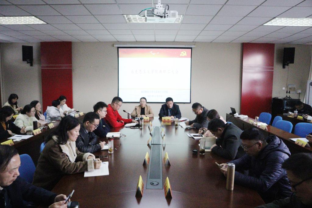 刘希刚副院长回顾了学院近期在教育部习思想课程调研、专家听课、试卷检查等方面取得的成绩,并对期末教学工作提出具体要求和安排,强调要进一步加强教学规范、遵守课堂纪律,同时要严格做好期末考试试卷出题及保密工作。王敏光副院长汇报了本年度学院国家社科基金年度项目和后期资助项目立项情况以及学院社会服务工作进展情况,同时领学了关于加强科研诚信建设的相关要求,号召全体教师要遵守科研工作规范,践行科研诚信要求,坚守科研诚信底线。院长助理范渊凯围绕研究生就业、研究生毕业论文开题答辩等具体工作做了汇报和说明。