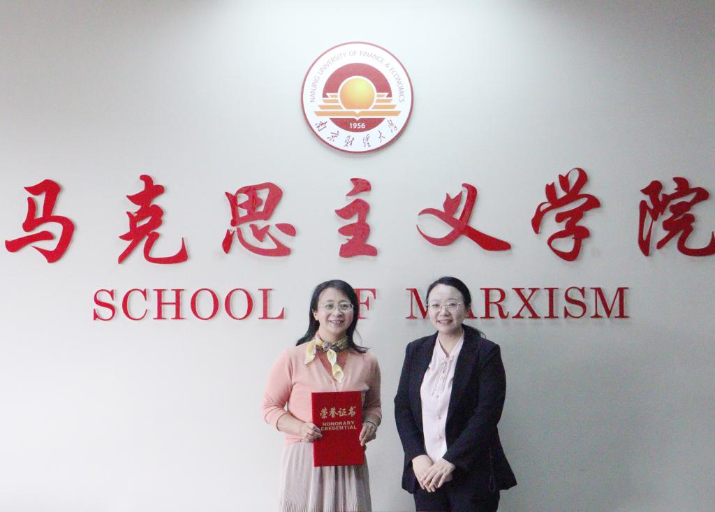 学院院长卓承芳分别为退休教师曹克、陶蓉颁发荣誉证书。