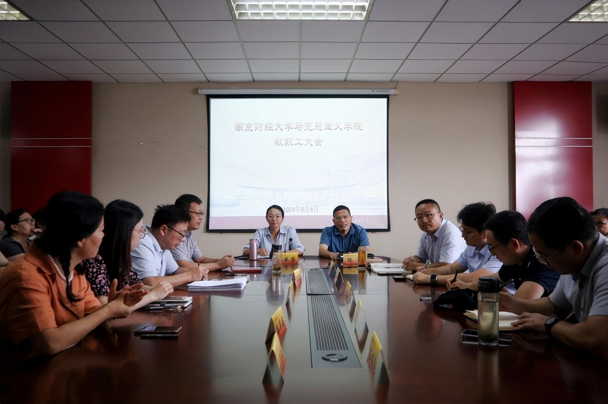 陈翔书记要求全体教师学习贯彻党的二十届三中全会精神,将党的创新理论及时、准确、全面地融入思政课教学。同时,要切实加强师德师风建设的长效机制,坚持立德树人、教书育人,努力成为“经师”和“人师”相统一的“大先生”。刘希刚副院长通报了学院迎评促建工作情况,要求各位教师继续推进试卷检查和课堂建设工作,将中华民族共同体意识纳入教学内容。王敏光副院长传达了今年上半年各类课题的申报情况,号召各位教师坚持以学科建设为引领,推动学院科研工作高质量发展。院长助理范渊凯对新学期研究生导师互选、开题答辩等工作做了通报。