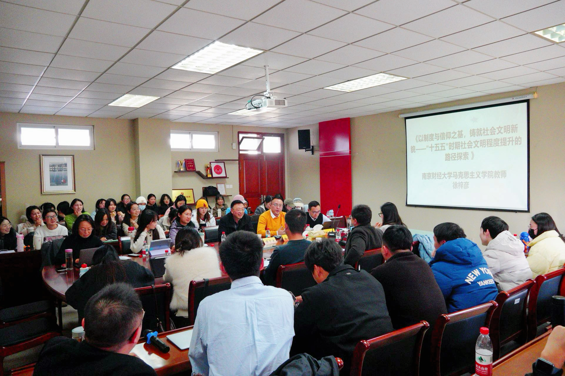 联合主办的“学习贯彻党的二十届四中全会精神”专题学术研讨会在仙林校区工科楼二楼会议室举行。会议紧扣全会相关重要论述,围绕强化新时代马克思主义学科建设、构建自主知识体系、完善党的制度建设等主题开展研讨交流。副校长张炳出席会议并致辞,来自南京大学、南京航空航天大学、河海大学等省内多所院校的专家学者,91porny