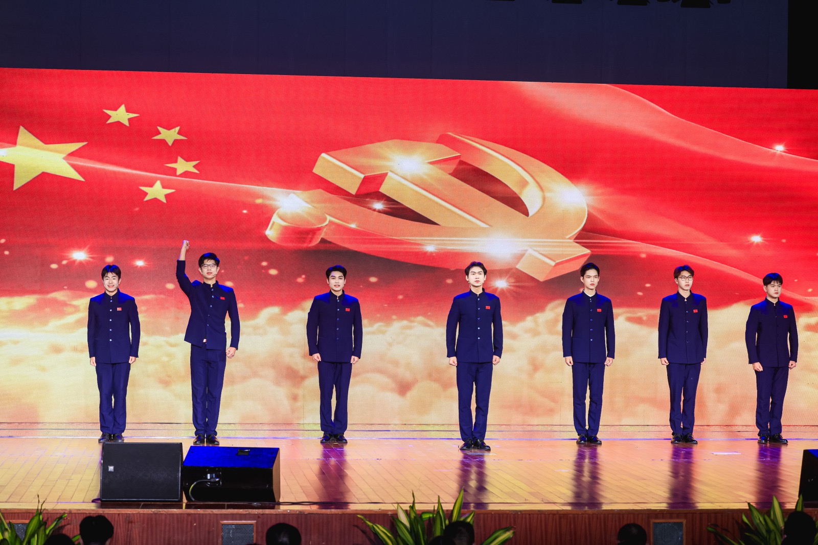 大艺团原创朗诵作品《旗帜》,充分展现了当代青年大学生听党话、跟党走的坚定信念,以及为实现中华民族伟大复兴的远大抱负和历史使命感。