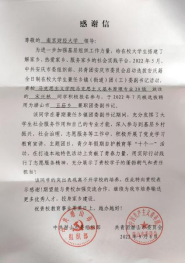 马克思主义基本原理专业20级研究生宋兴林同学兼任五庙乡团委副书记、为家乡建设贡献青春力量提出了表扬,对学校培养有朝气、有责任、有担当的学子表示感谢。