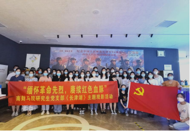 为庆祝中华人民共和国成立72周年,进一步激发支部党员爱党爱国热情,10月10日下午,研究生党支部举行党史学习教育主题实践活动,组织支部全体党员观看红色电影《长津湖》。