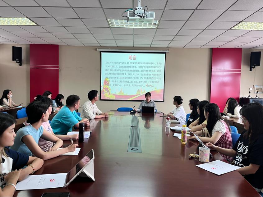 研究生党支部在德正楼508会议室召开党纪学习教育专题会。会议由党支部书记左云云同志主持,纪检委员林静同志领学,支部全体党员参加会议。
