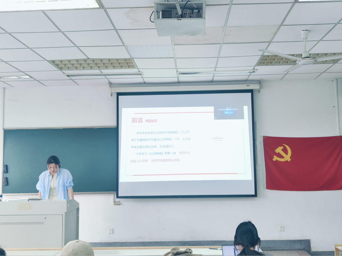 4月10日下午,91porny 研究生党支部在德正楼204开展学习活动,集中学习《习近平关于加强党的作风建设论述摘编》。会议由党支部书记付菁菁主持,纪律委员沈丽君同志领学,支部全体党员参加会议。